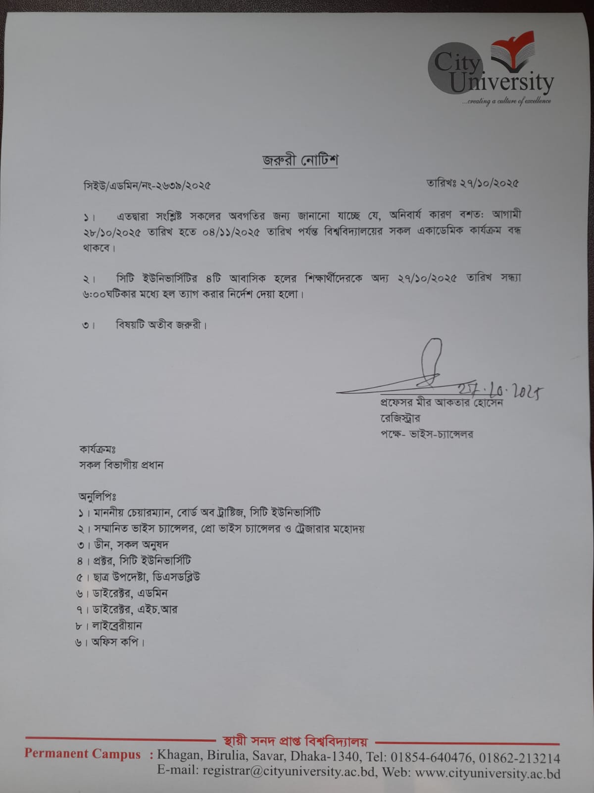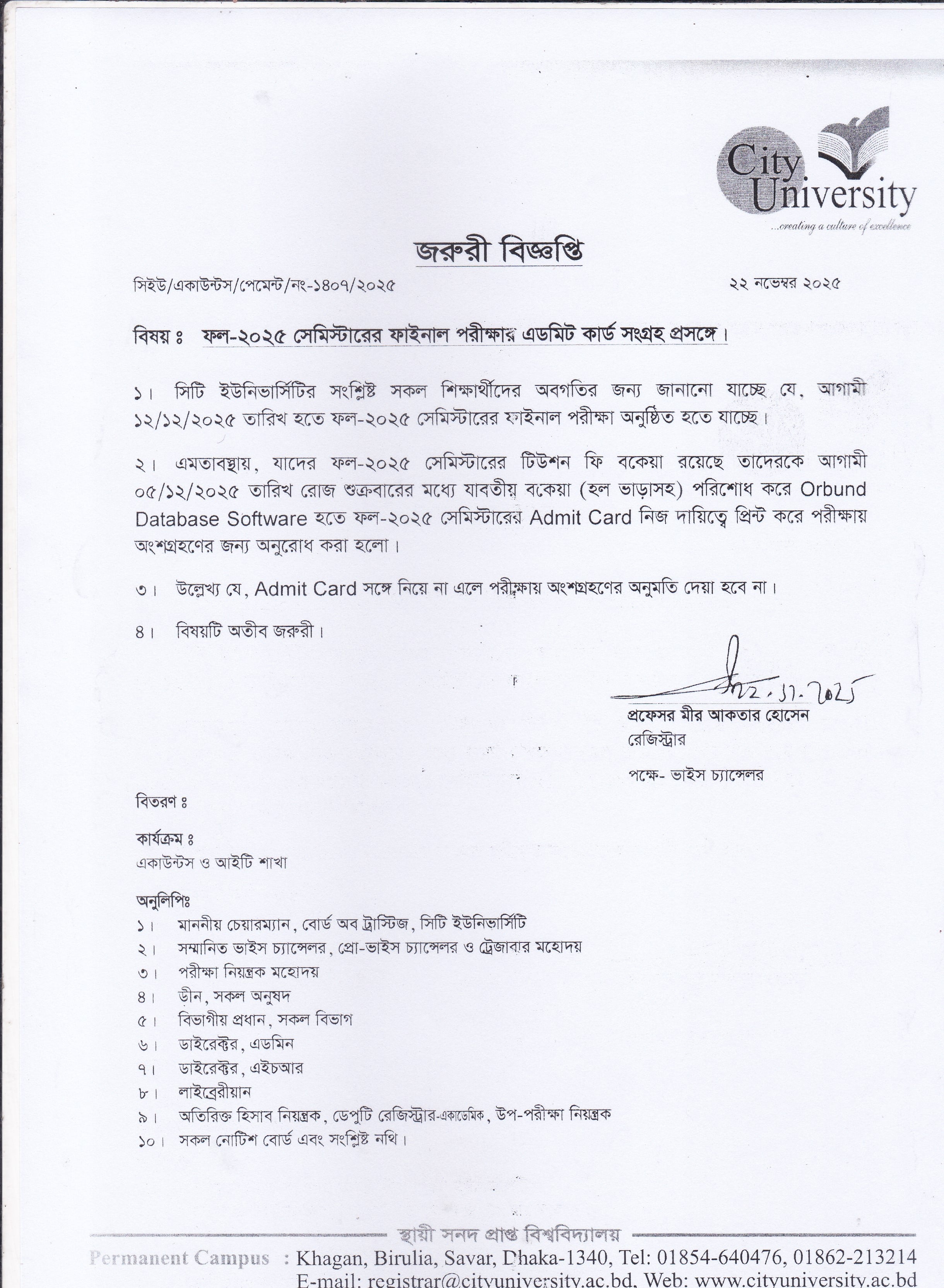 City University was established by Alhaj Mockbul Hossain in 2002 for the public benefit and it is recognized globally. Throughout our great history, City University has offered access to a wide range of academic opportunities. Focusing on the concept of higher education for all, the University has pioneered change in the sector bringing opportunities to those without one.