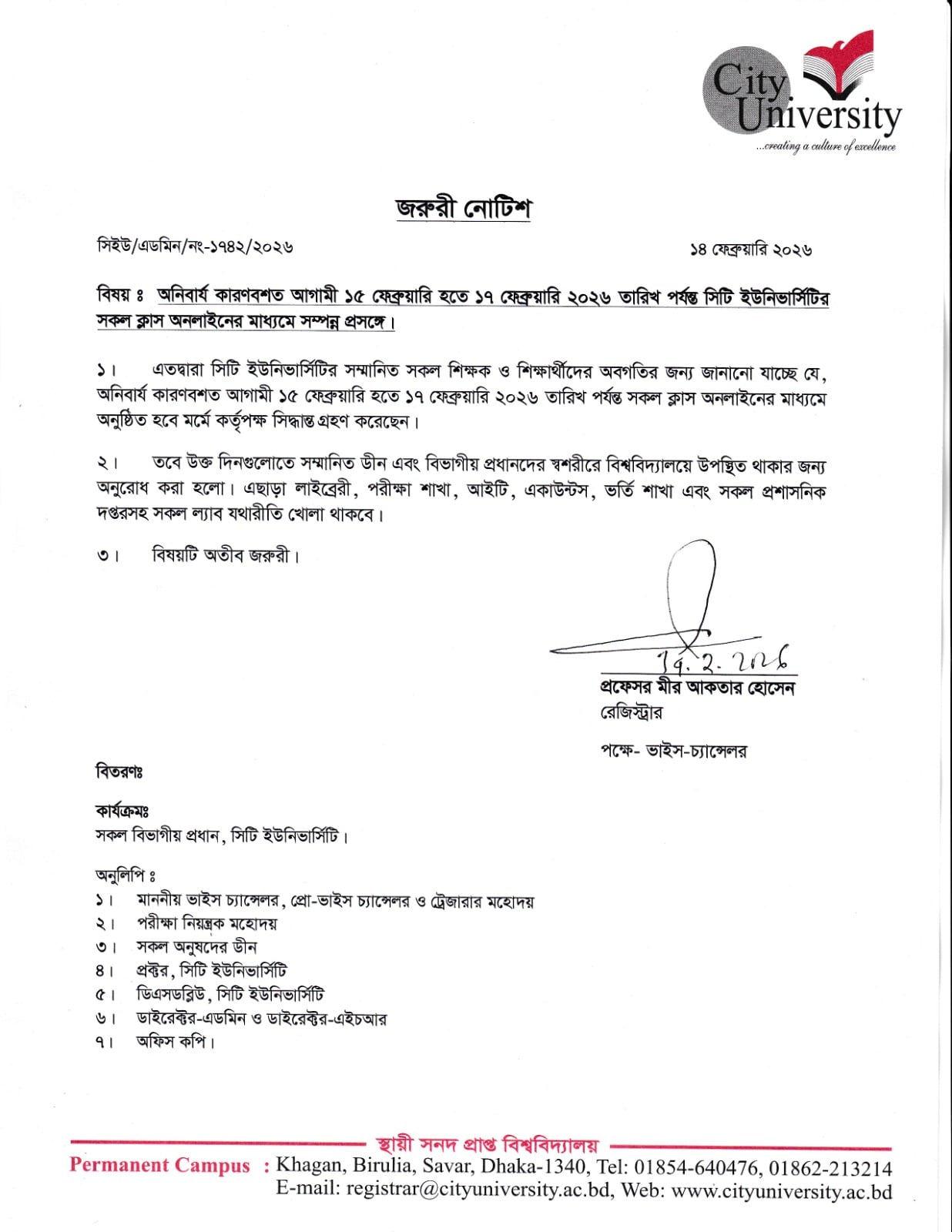 ২১ ফেব্রুয়ারি আন্তর্জাতিক মাতৃভাষা দিবস উপলক্ষে সিটি ইউনিভার্সিটির উদ্যোগে আলোচনা সভা ও শহীদমিনারে পুষ্পস্তবক অর্পণের আয়োজন করা হয় । শহীদমিনার, সিটি ইউনিভার্সিটির