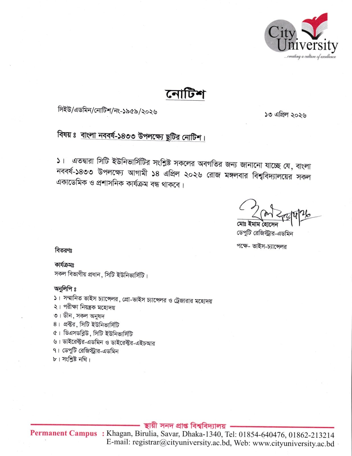 ২১ ফেব্রুয়ারি আন্তর্জাতিক মাতৃভাষা দিবস উপলক্ষে সিটি ইউনিভার্সিটির উদ্যোগে আলোচনা সভা ও শহীদমিনারে পুষ্পস্তবক অর্পণের আয়োজন করা হয় । শহীদমিনার, সিটি ইউনিভার্সিটির
