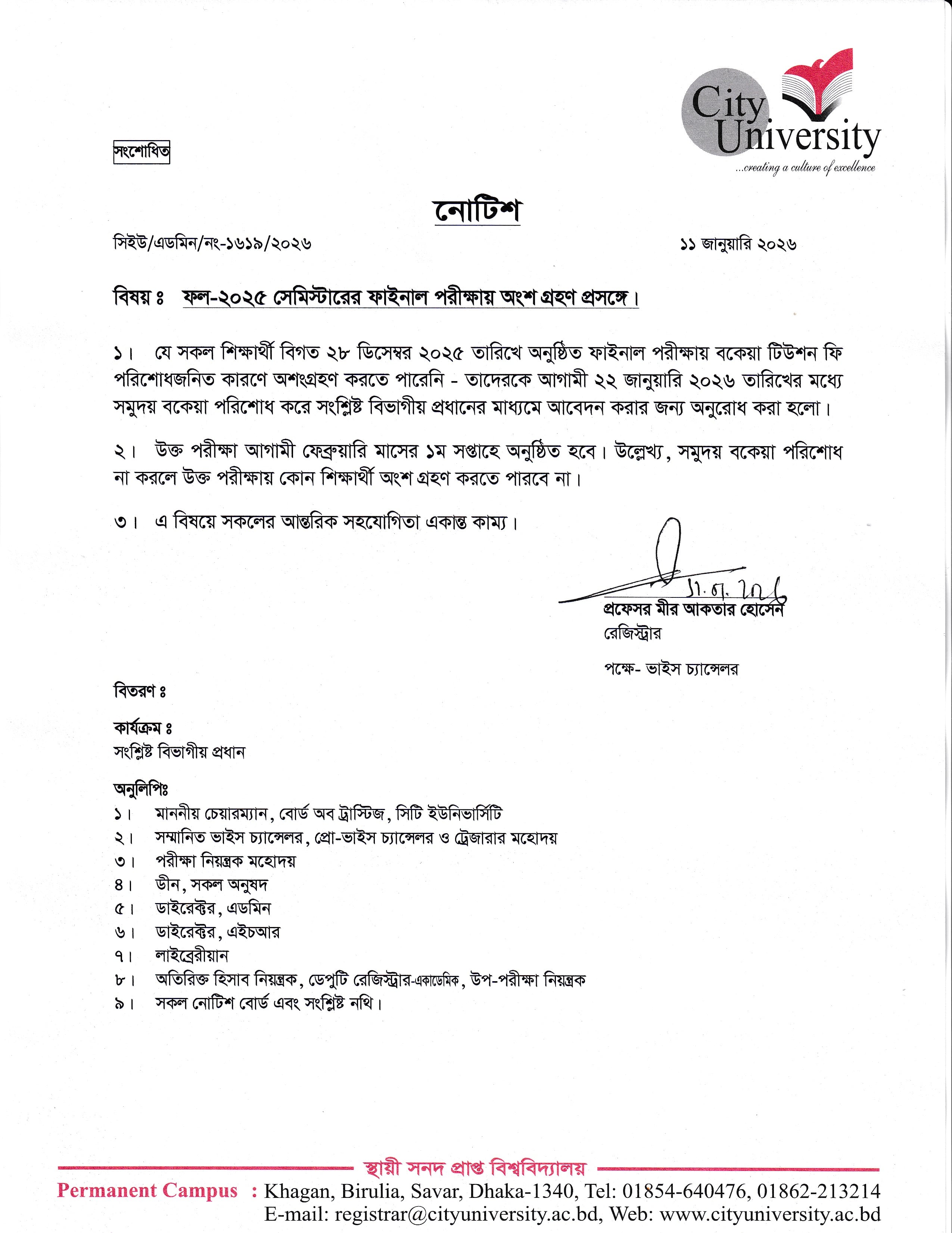 ২১ ফেব্রুয়ারি আন্তর্জাতিক মাতৃভাষা দিবস উপলক্ষে সিটি ইউনিভার্সিটির উদ্যোগে আলোচনা সভা ও শহীদমিনারে পুষ্পস্তবক অর্পণের আয়োজন করা হয় । শহীদমিনার, সিটি ইউনিভার্সিটির